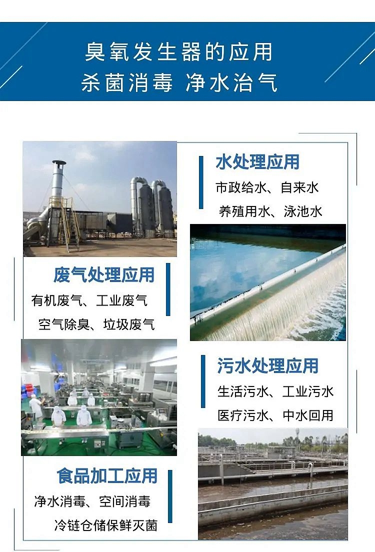 5、臭氧放电室采用水冷设计,及时带走高压放电产生的热量,臭氧产量稳定;