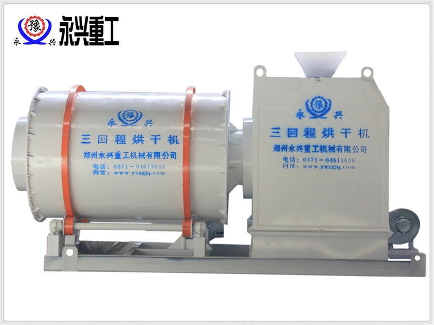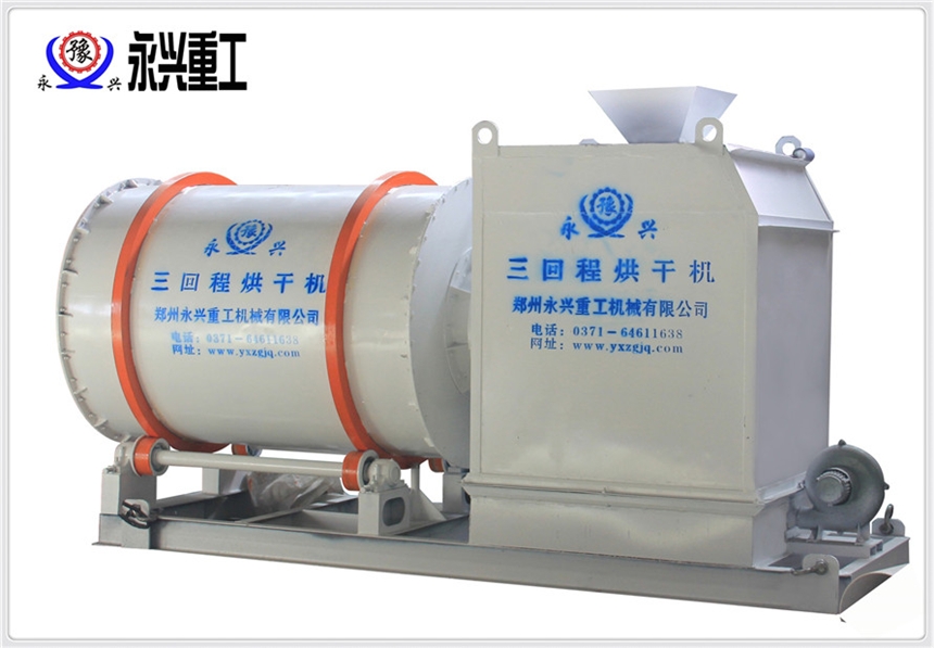 材料通过进料装置进入滚筒内侧,实现电流干燥过程,然后物料通过另一端进入内壁中间层,实现逆流干燥过程。它们在中间层一遍又一遍地抬起,向前两步前进,后退一步。三筒烘干机吸收内鼓和中鼓的热量,延长干燥时间,实现干燥条件。最后,材料从中间层的另一端落入滚筒的外层,以矩形多环方式处理。烘干的材料在热空气下快速移出滚筒,而湿的材料由于其自身重量而保持不变。